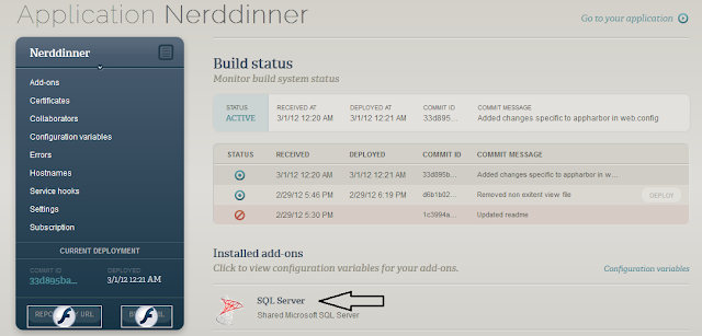 Nerddinner requires SQL Server to store its data and therefore I had to provision a SQL Server instance in AppHarbor.